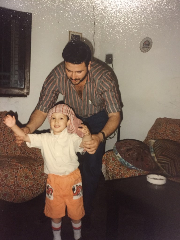 In this captivating photo, Khalil Khalil is seen dancing Dabke with his father, a testament to the deep-rooted cultural heritage of his upbringing. Dance and music were integral to Khalil’s childhood, ingrained in him through a lineage rich in artistic tradition. His maternal family, particularly his grandmother and aunts, were celebrated for their joyful Dabke performances, embodying a legacy of celebration and artistic expression that has been cherished and passed down through generations.